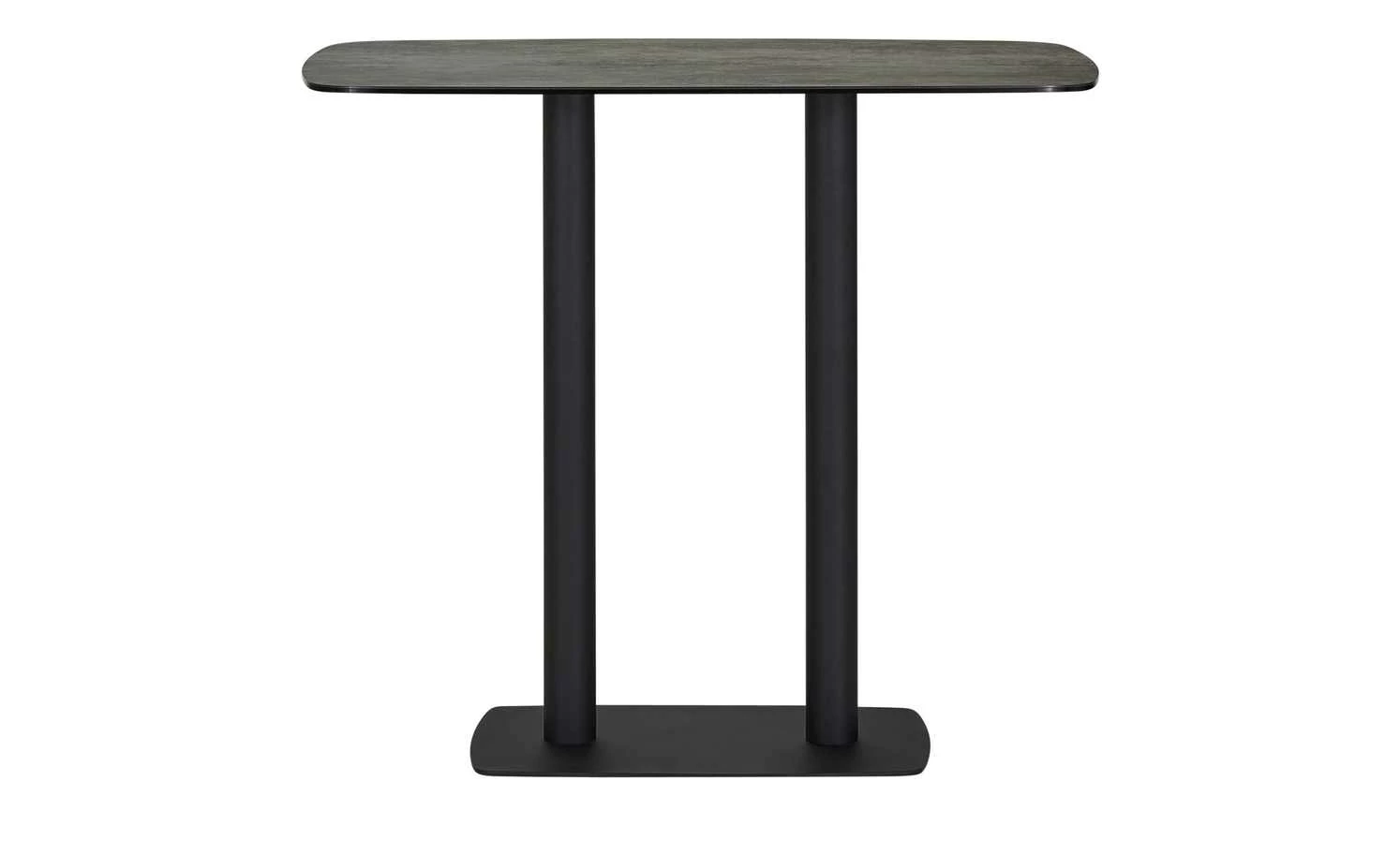 Der Bartisch Damasos-120 ist eine tolle Ergänzung für die heimische Bar, den Partykeller oder die Küche. Er ist 105 Zentimeter hoch und kann somit wunderbar mit Barstühlen ergänzt werden. Die quadratische Tischplatte besteht aus edler schwarzer Keramik. Für das Gestell aus zwei Säulen ist geschwärztes Eisen verwendet worden.