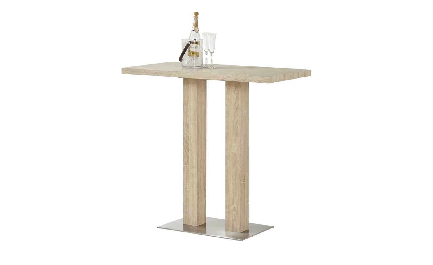 Warum nicht mal über den Dingen stehen? Ein Bartisch ist eine gute Alternative zum gewöhnlichen Tisch. Zum Beispiel der Bartisch Dustin2-120 von uno. Sie können ihn als Esstisch in der Küche, dem Essbereich oder für die heimische Bar nutzen. Er braucht nur wenig Stellfläche, bietet aber dennoch Platz für sechs Personen. Die rechteckige Tischplatte und das Säulengestell haben eine natürlich wirkende Holzoptik in Eiche Sonoma (Nachbildung).
