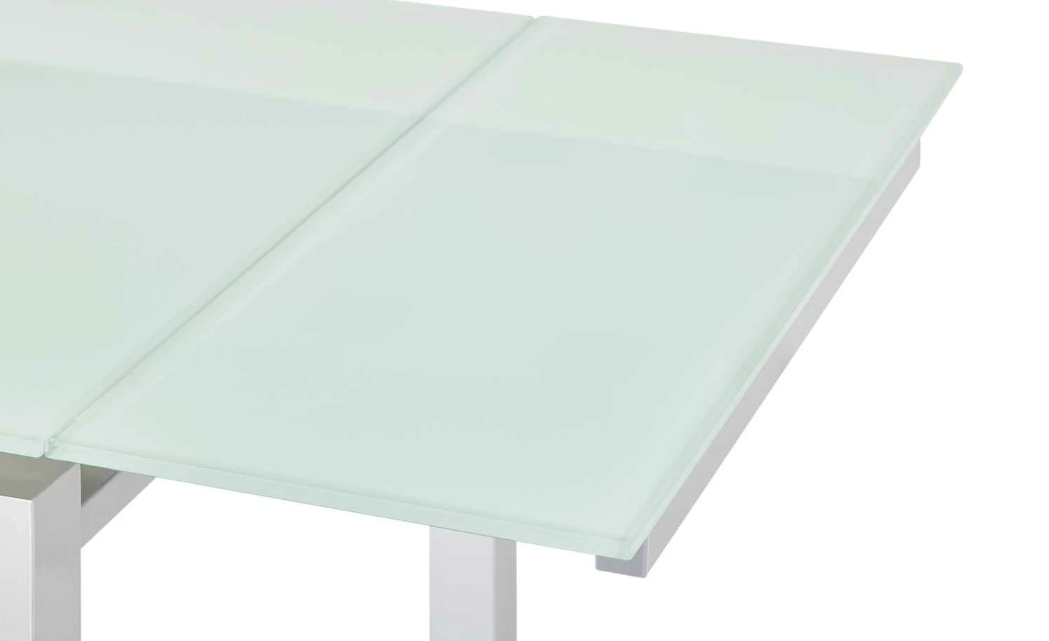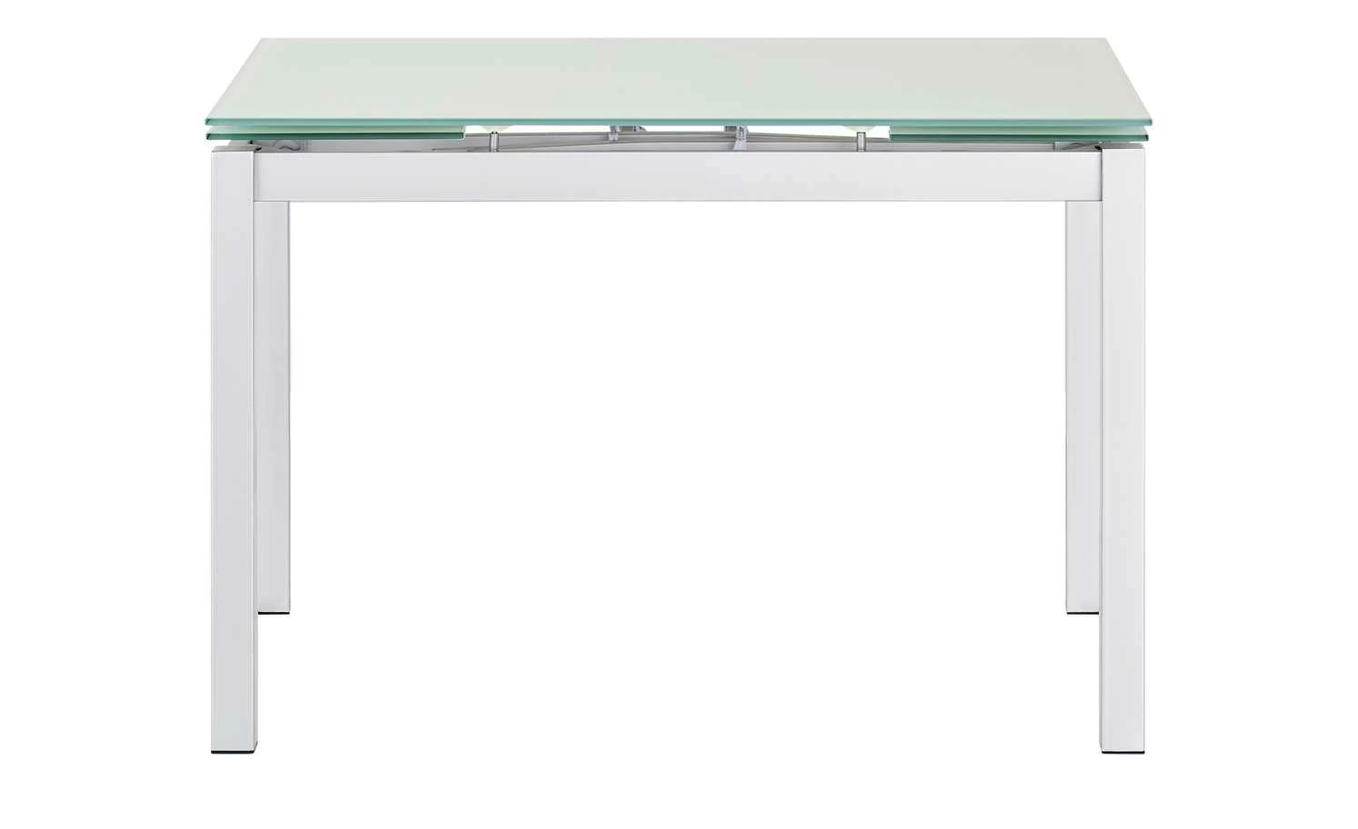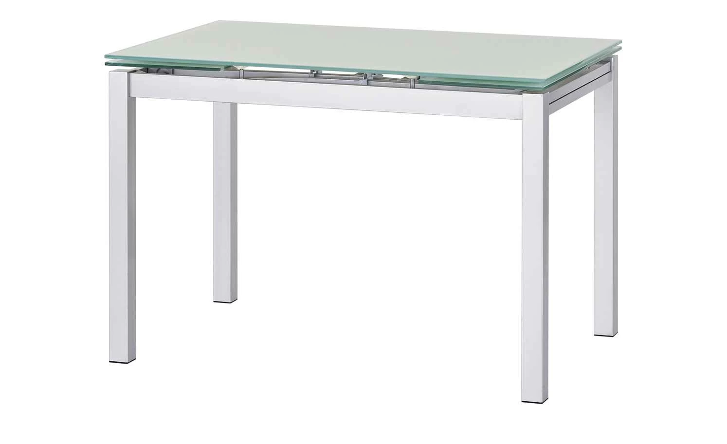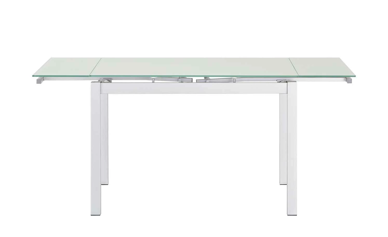 Der Materialmix aus Glas und Metall lässt den Esstisch Tim modern und extravagant wirken. Das Gestell besteht aus Metall, welches alufarben lackiert wurde. Die Tischplatte besteht aus Glas. Das macht sie besonders pflegeleicht, denn Flecken lassen sich ganz einfach mit einem feuchten Tuch entfernen, ohne dauerhafte Spuren zu hinterlassen. Die Unterseite der Glasplatte ist weiß lackiert. Die Farbe schimmert durch das Glas hindurch, was eine besondere Optik entstehen lässt. Bei Bedarf können Sie Tim einfach auf zirka 170 Zentimeter verlängern. Möglich machen das die beiden sogenannten Vorkopfauszüge, die sich an den beiden Tischenden befinden.