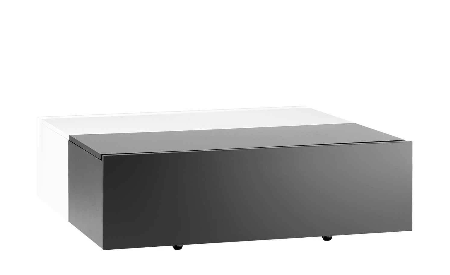 Der Couchtisch Young Users besteht aus zwei Boxen. Die eine ist schwarz, die andere weiß. Beide sind miteinander verbunden und mit Rollen versehen. So können Sie den Couchtisch einfach bewegen. Jede der Boxen ist mit einer Klappe ausgestattet. Darunter befindet sich Stauraum.