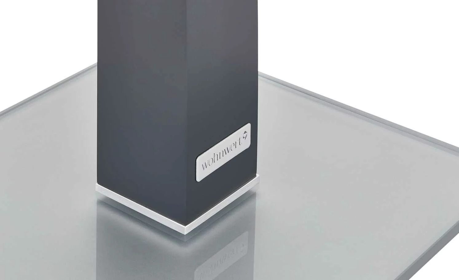 Neben der Couch, dem Sessel oder im Wintergarten – der Beistelltisch Quatro von Wohnwert ist praktisch und hat ein zeitlos elegantes Design. Tisch- und Bodenplatte sind aus stabilem Glas gefertigt. Für die Tischplatte ist ein dezentes Klarglas verwendet worden; die Bodenplatte setzt sich in Weißglas ab. Das Gestell in Säulenform ist aus Metall gefertigt und sorgt für einen sicheren Stand des Tisches. Es ist graphitgrau lackiert und hat ein attraktives mattes Finish.