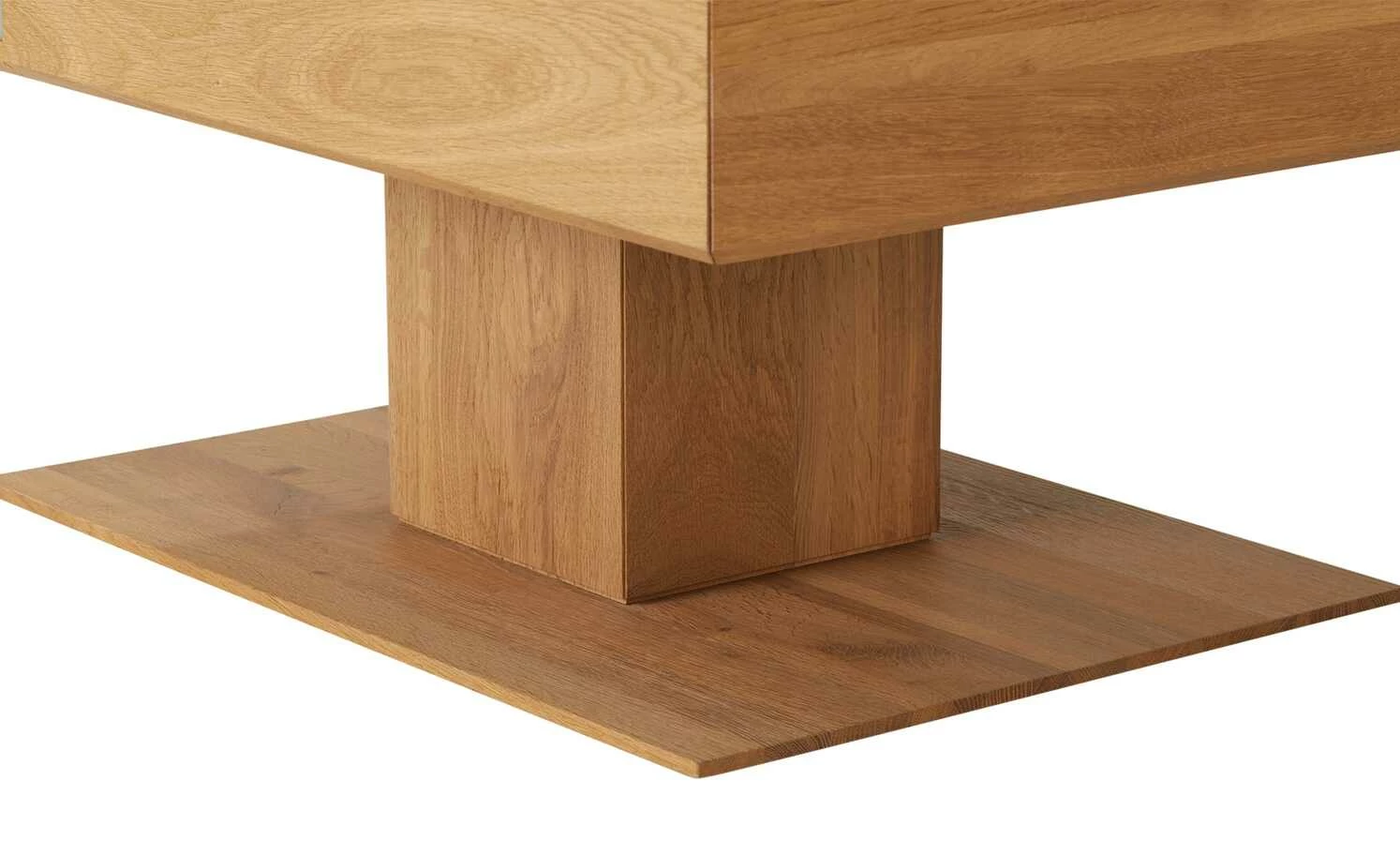 - Mehr zum Material: Tischplatte und Gestell aus massiver Kerneiche Umato gebürstet mit Mattglas-Applikation