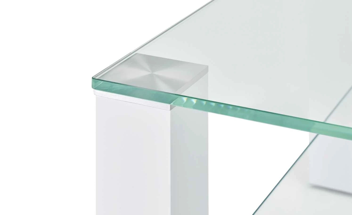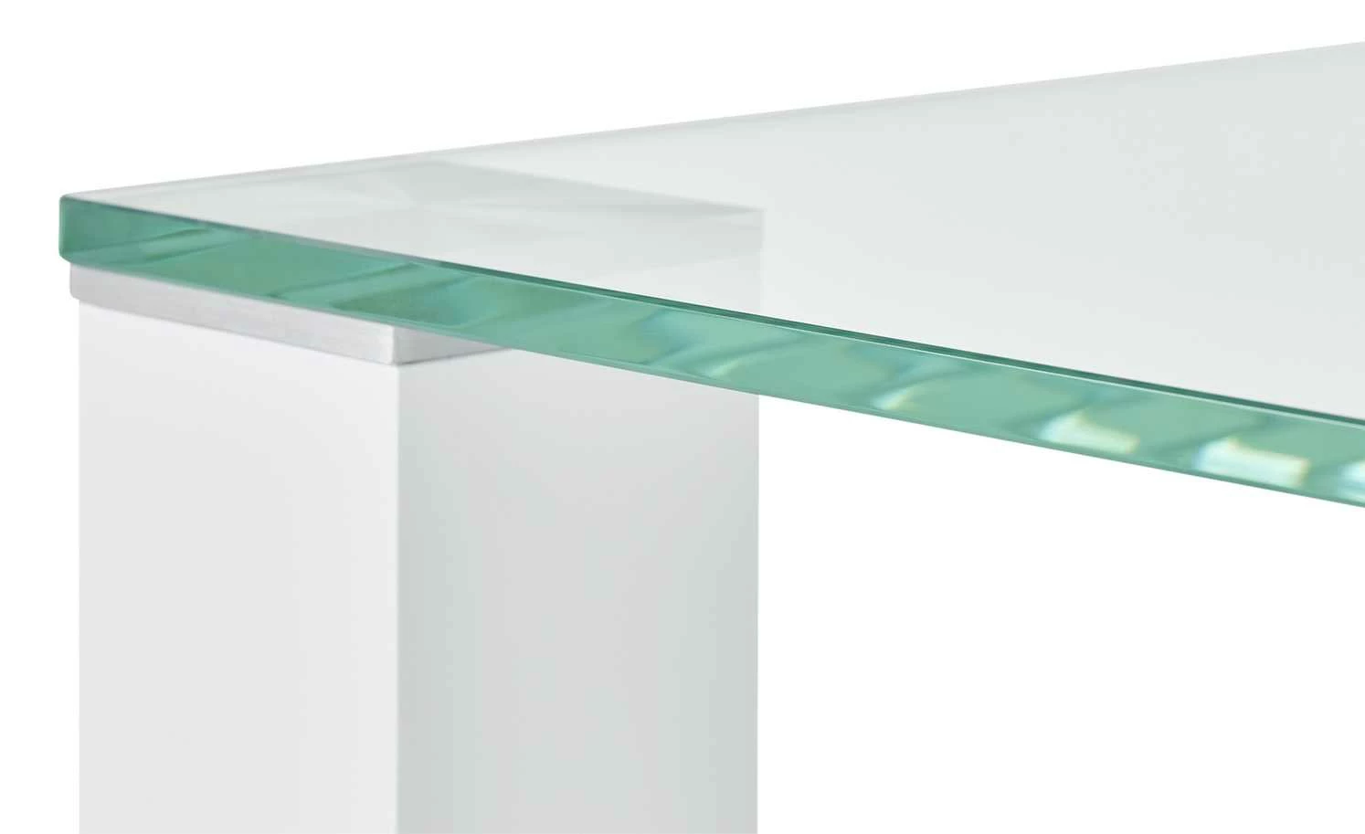 - Mehr zum Material: Tischplatte und Ablegeplatte: Weißglas