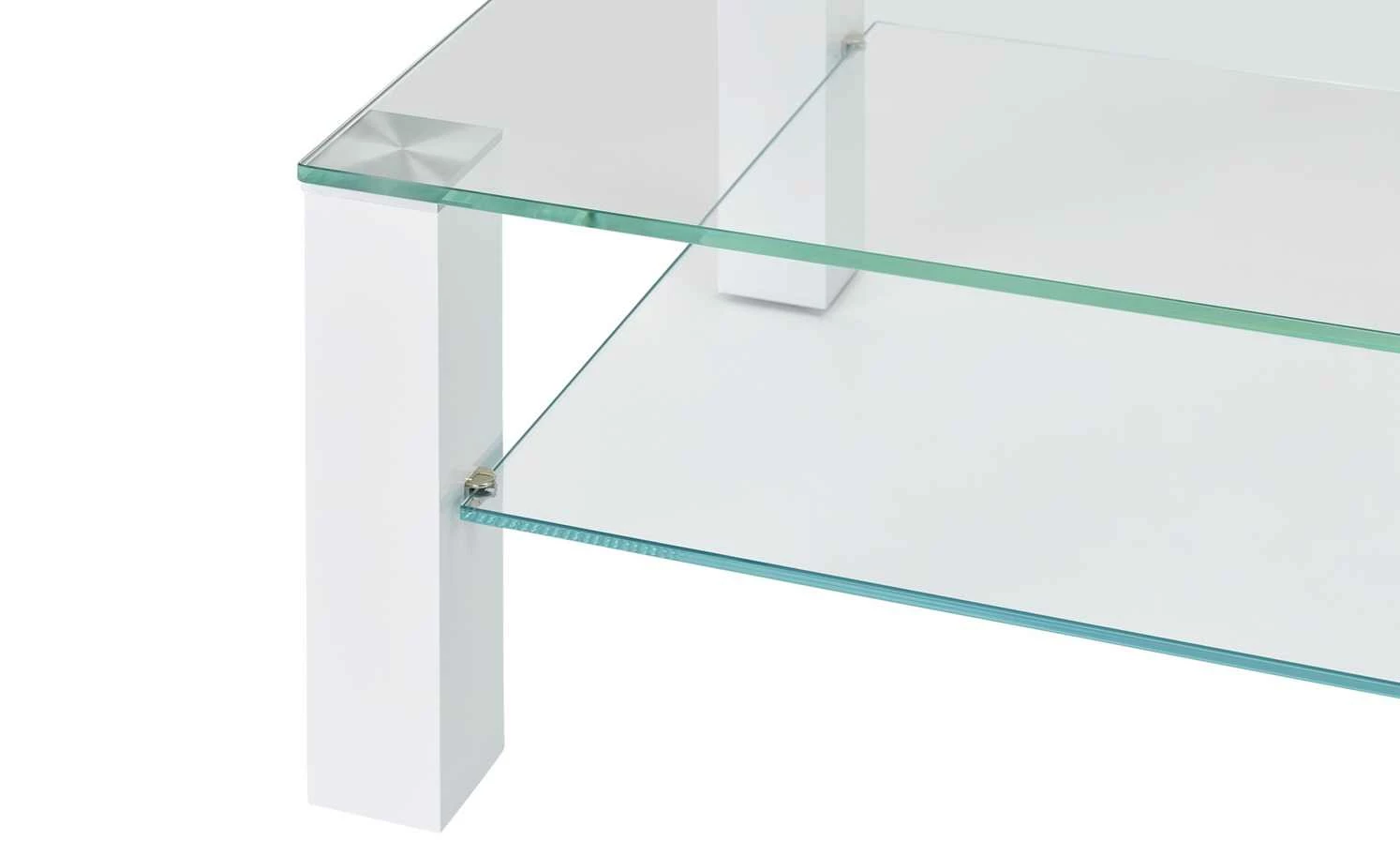 Stil, Qualität und Funktionalität vereint der Couchtisch Quatro von Wohnwert. Die rechteckige Tischplatte aus Weißglas wird von vier stabilen Tischbeinen getragen. Alle vier sind in Signalweiß lackiert und haben ein edles hochglänzendes Oberflächenfinish. Quatro kommt mit einer zusätzlichen Ablage zu Ihnen. Sie ist ebenfalls aus stabilem Weißglas gefertigt. Praktisch: Der Tisch verfügt über Rollen. Sie sind in den Tischbeinen integriert und somit versteckt. So können Sie Quatro bei Bedarf einfach bewegen.