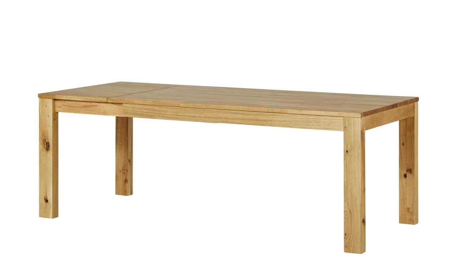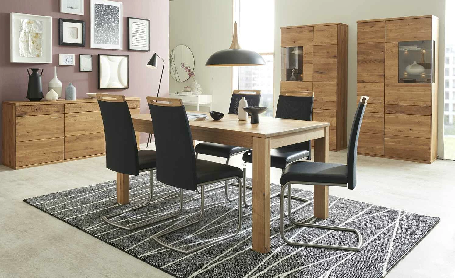 Aus hochwertiger Wildeiche ist der Esstisch Einsteiger von Wohnwert gefertigt. Die Oberfläche des Tisches ist geölt. Das dient einerseits dem Schutz des Holzes und bringt andererseits die Maserung zur Geltung. Diese macht nämlich den natürlichen Charme des Tisches aus. Dank des sogenannten Gestellauszuges lässt sich Einsteiger mit wenigen Handgriffen vergrößern. So haben Sie bei Bedarf Platz für bis zu acht Personen.