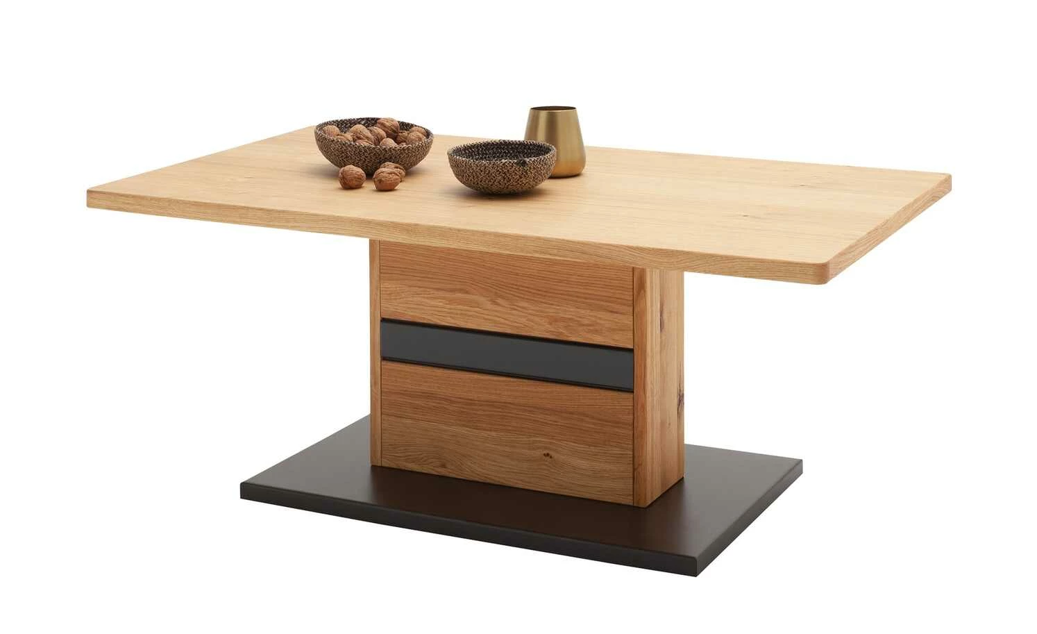 - Mehr zum Material: Gestell aus Massivholz Wildeiche geölt, Bodenplatte in Anthrazit lackiert, Tischplatte aus Holzwerkstoff furniert Wildeiche geölt