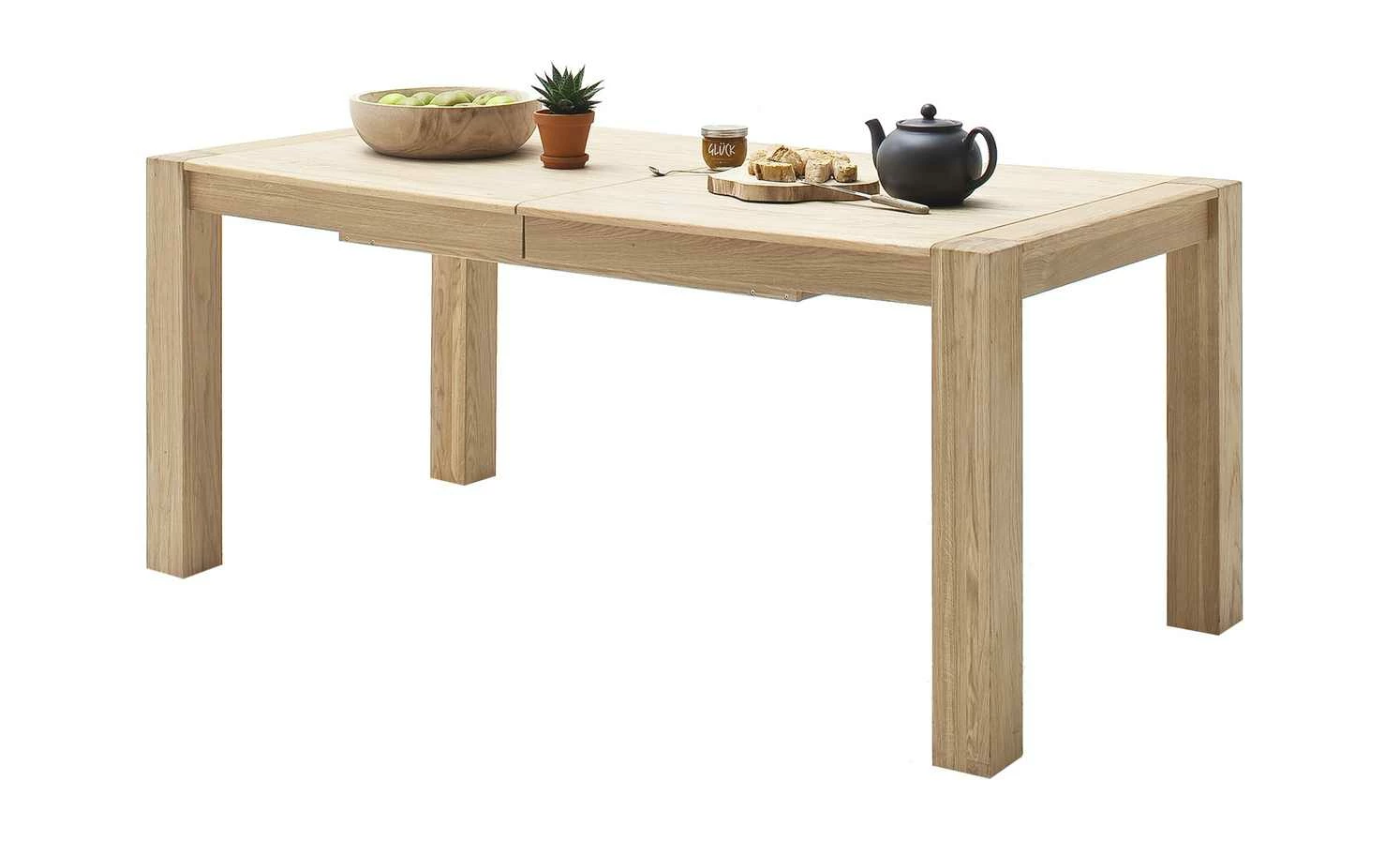 - Mehr zum Material: Tischzarge Eiche Bianco massiv, Tischplatte Eiche Bianco furniert mit massiven Anleimern