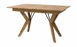 - Mehr zum Material: Tischplatte und Gestell aus Eiche rustik massiv gespachtelt und geschliffen, Gestell-Applikation aus Metall in Schwarz