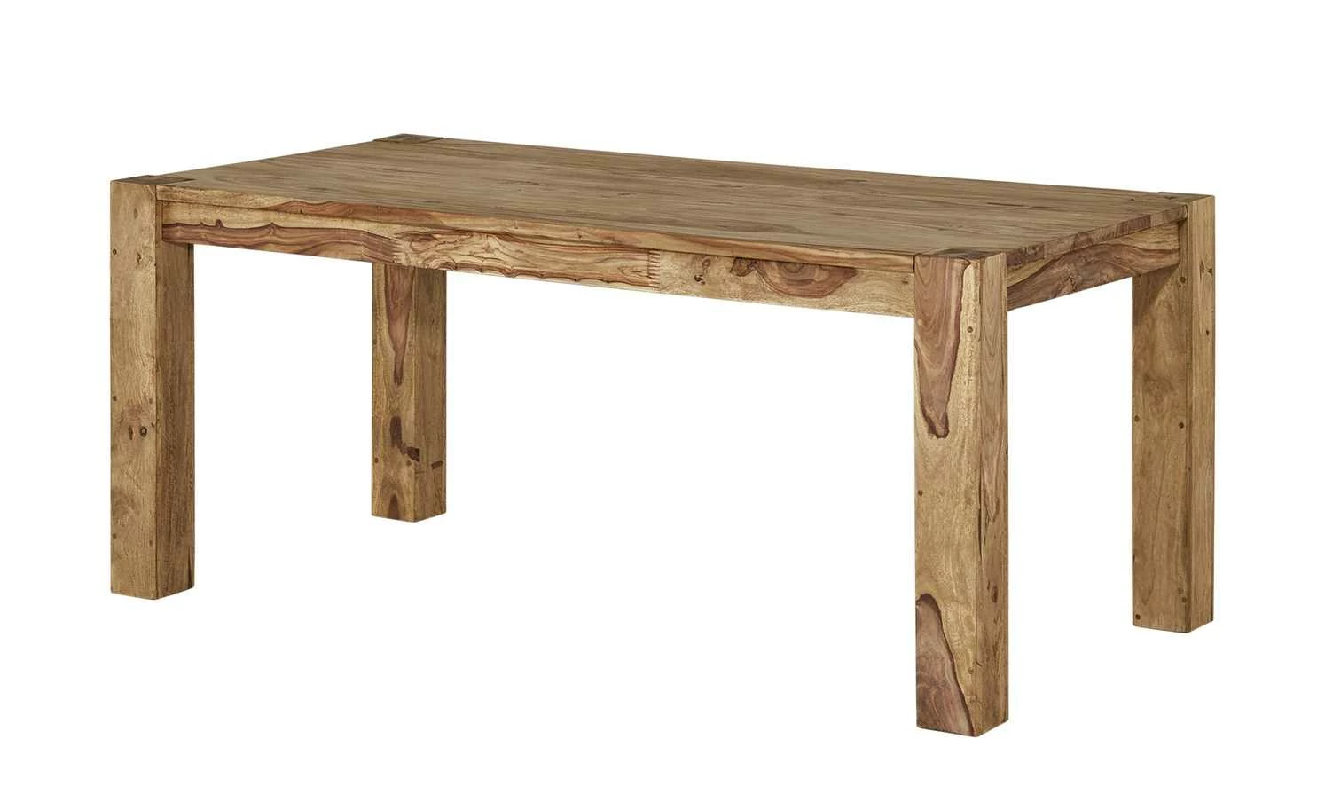 - Mehr zum Material: Tischplatte und -beine aus Sheesham natur massiv gebeizt und lackiert