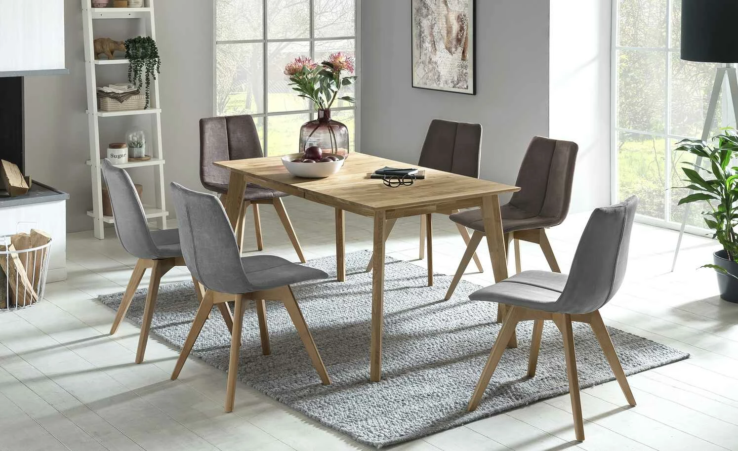 Skandinavisch reduziert, natürlich wohnlich und praktisch – das ist der Esstisch Myke. Er ist komplett aus massiver Wildeiche gefertigt. Ihr rustikaler Charme wird durch die sogenannte keilverzinkte Optik noch besser hervorgehoben. Myke kann mithilfe eines Mittelauszuges auf 185 Zentimeter verlängert werden. Je nach Länge der Tischplatte – also ausgezogen oder nicht – passen so also sechs bis acht Personen an den Tisch.